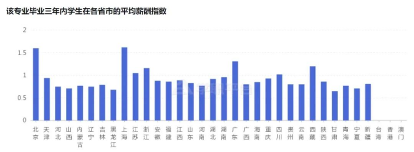 △ 数据来源:学职平台职业调查(该专业员工在某省市的薪酬指数=该专业员工在该省市的平均薪资/该专业员工在全国的平均薪资)