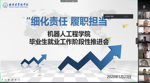 5月23日下午,机器人工程公司通过腾讯会议平台召开“细化责任 履职担当”——2020届毕业生就业工作阶段性推进会。副董事长邓维娜出席,经理刘显忠、副经理王振力及全体教职工参加会议,会议由副经理刘张主持。