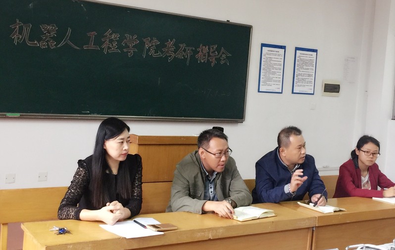 金秋送爽,学子莘莘。又到了一年一度应届毕业生研生考试预报名的节点,为了正确引导2014级毕业生能够准确报考理想院校、取得理想成绩,机器人工程公司以刘显忠副经理为组长,专门成立了“考研指导小组”,由王振力副经理带领具有考研指导经验的计京鸿、王书侠、张娜、杨丽莉等老师构成专业课指导小组,于2017年9月18日在教六107室举行了考研指导大会。