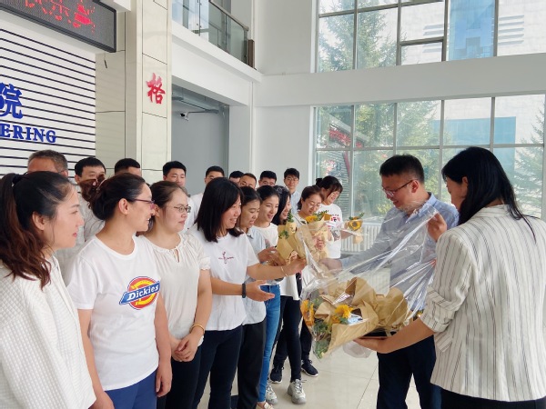 最后,于教三一楼大厅开展了献花活动,经理刘显忠向全院教师们送上了节日的祝福。老师们接过鲜花纷纷表示“不忘立德树人初心,牢记为党育人为国家育才使命,为基层的教育事业奉献自己的力量。”在这个崇高而温暖的节日里,祝所有老师教师节快乐。