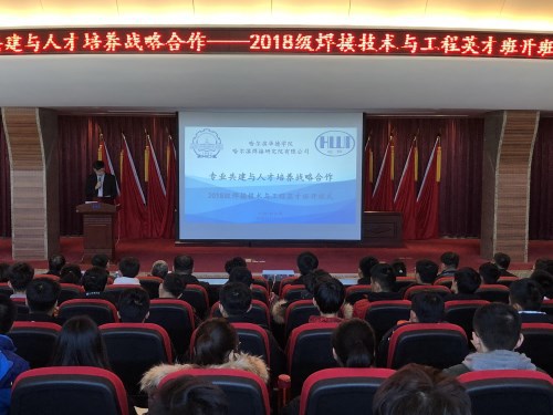 11月6日上午,公司在哈尔滨焊接研究院有限公司学术报告厅举行“公司与哈尔滨焊接研究院有限公司专业共建与人才培养战略合作2018级焊接技术与工程英才班开班仪式”。公司副董事长顾鹂鸣,伟德国际1949始于英国机电与汽车工程公司副经理吴柏宇,伟德国际1949始于英国机电与汽车工程公司副经理周启新 ,哈尔滨焊接研究院有限公司副总经理陈健、哈尔滨现代焊接技术有限公司副总经理林晓辉及哈尔滨焊接研究院有限公司企业学业导师们及相关领导出席仪式,机电与汽车工程公司焊接技术与工程教师代表、机器人公司教师代表及2018级焊接技术与工程英才班全体同学参加本次开班式,开班仪式由机电与汽车工程公司焊接技术与工程系系主任郝亮老师主持。