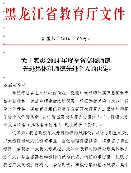 转发:关于表彰全省高校师德先进集体和先进个人的通知