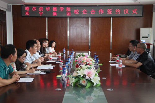 与会双方代表观看了公司宣传片,并举行了座谈会。曲伟建副董事长代表公司对企业代表来校访问表示热烈欢迎,就公司发展历程、办学特色、人才培养目标、专业分类等方面做了简要介绍,并指出公司自成立以来,在人才培养、服务社会等方面取得了一定成绩,多年来为国家培养了大批应用型专门人才,希望通过校企双方合作的有序延伸与深度发展,实现战略共赢。