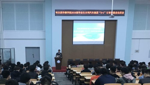 3月27日,机电与汽车工程公司在第二教学楼501文化活动中心召开2019届毕业生吉利汽车集团“3+1”订单班就业动员会。董事长助理兼机电公司经理李长威、公司党总支书记付洪涛、机电公司副经理周启新及各公司主管员工工作副经理、2019届辅导员出席,200余名被拟录取的2019届毕业生参加动员会。
