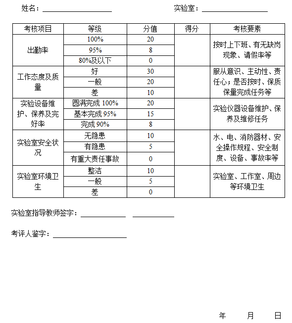 下一篇:机电与汽车工程公司实验室指导教师日常工作考核表