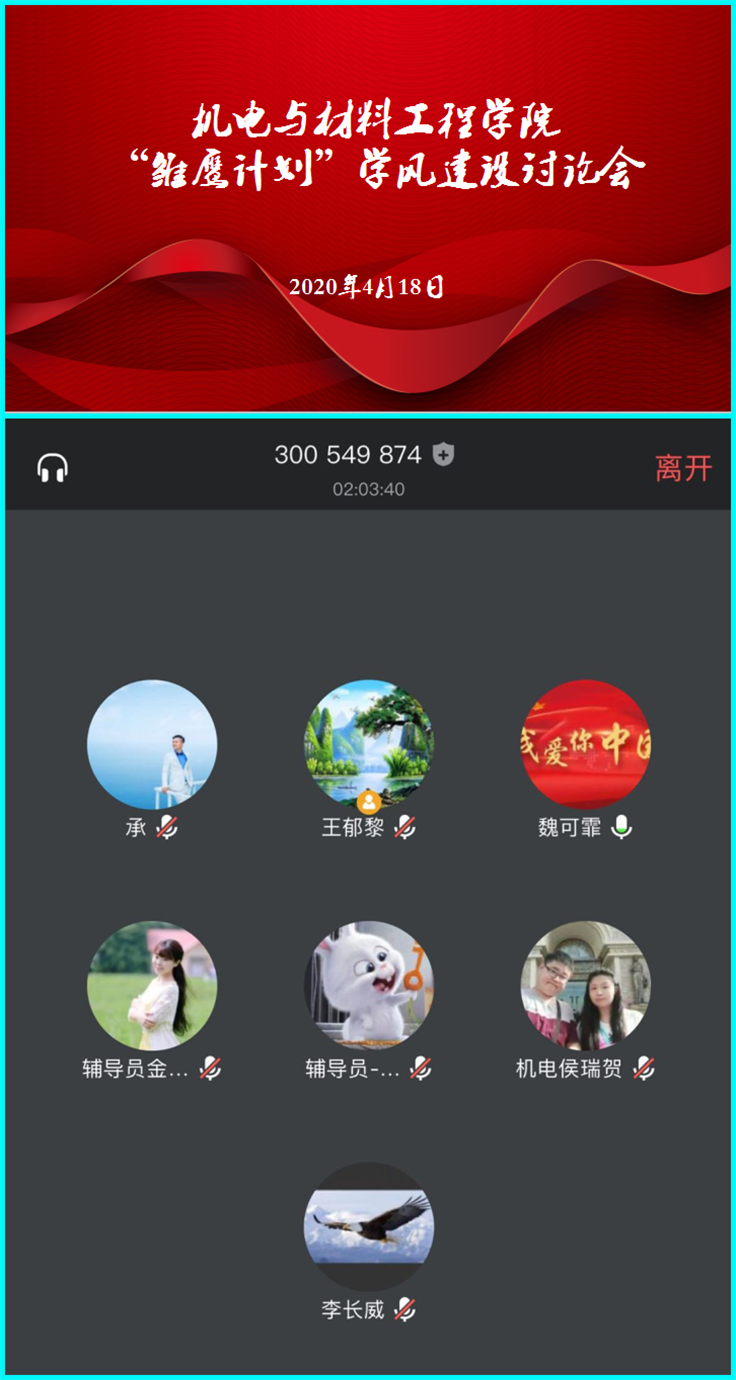 4月18日,为深入贯彻落实全国全省教育大会精神,进一步发挥公司办学育人理念和整体建设理念在培育良好学风方面的重要作用,切实有效做好疫情期间公司产品质量与人才培养质量的双提高。机电与材料工程公司通过【腾讯会议】召开了“机电与材料工程公司“雏鹰计划”学风建设讨论会”。董事长助理兼公司党委组织部部长魏可霏、董事长助理兼机电与材料工程公司经理李长威及公司全体员工工作者参会,会议由公司党总支书记王郁黎主持。