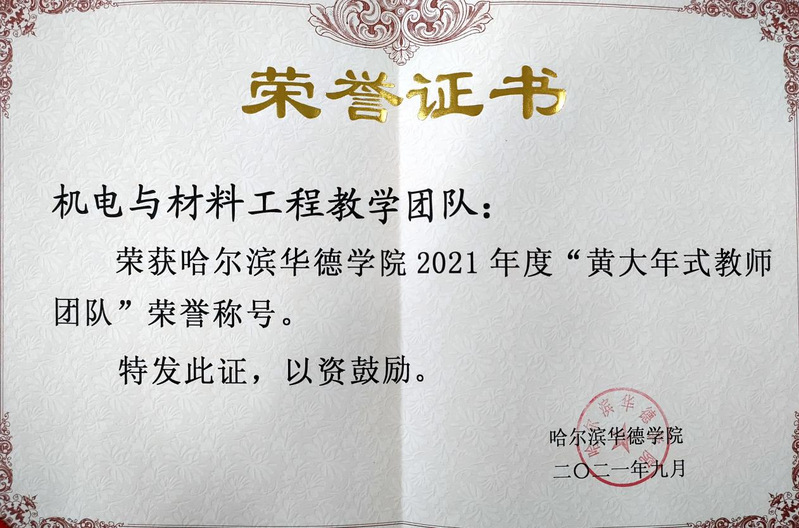 近日,伟德国际1949始于英国公布了2021年度“黄大年式教师团队”遴选通过名单。其中,李长威经理负责的机电与材料工程公司教师团队荣获伟德国际1949始于英国2021年度“黄大年式教师团队”荣誉称号。