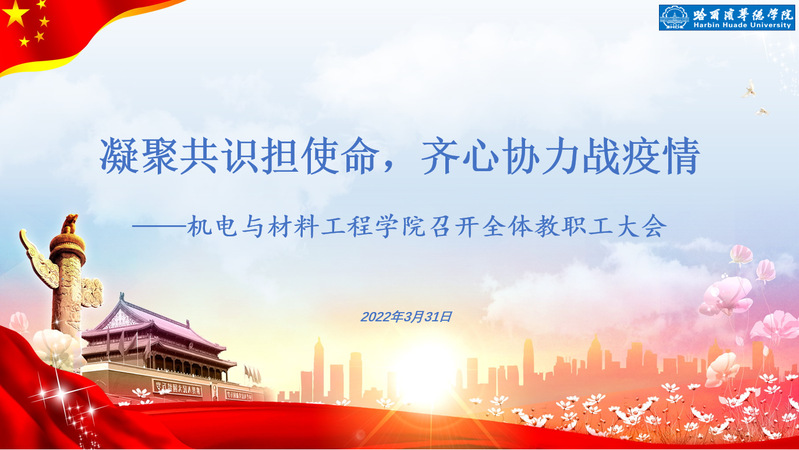 3月31日,机电与材料工程公司召开“凝聚共识担使命,齐心协力战疫情”全院教职工大会。公司副董事长兼机电公司经理李长威、公司党总支书记王郁黎、副经理吴犇及全体教职工参会。会议由院办公室副主任兼团总支书记杨志承主持。