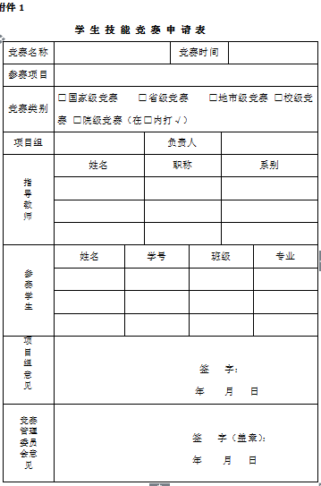 附件1:员工技能竞赛申请表