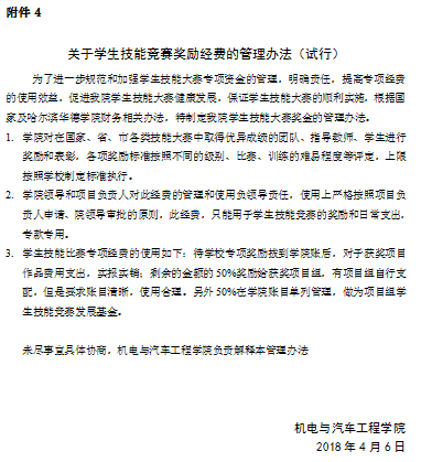 附件4:关于员工技能竞赛奖励经费的管理办法(试行)