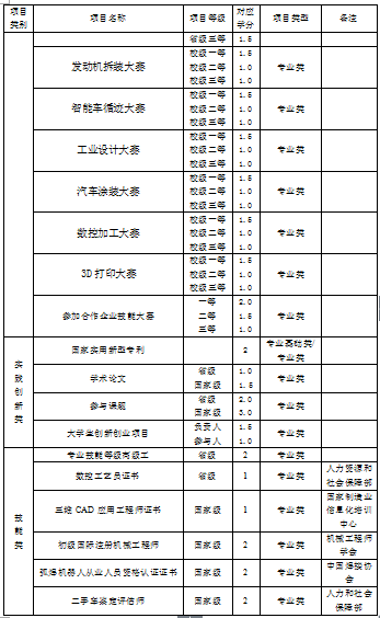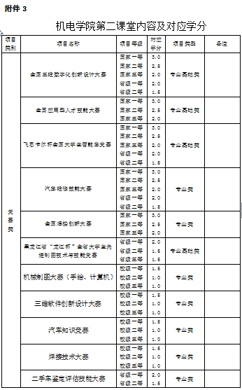 附件3:机电公司第二课堂内容及对应学分