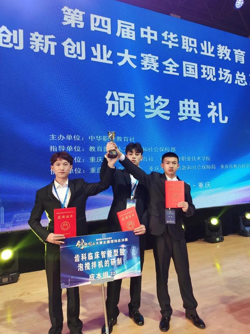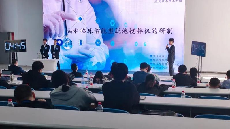 公司创新创业中心9月中旬正式启动赛事筹备。在此期间,黑龙江省中华职业教育社办公室主任方向阳、公司常务副董事长顾鹂鸣、副董事长关晓冬、董事长助理李长威等领导多次进行指导。最终,经过层层遴选,由机电与材料工程公司陈福民、朱斌海老师指导,机械设计制造及其自动化专业(试点班)员工杨宇皓、赖荣胜、董昭宇等同学完成的参赛项目《齿科临床智能型脱泡搅拌机的研制》,作为黑龙江省应用型本科组唯一项目参加全国总决赛并荣获三等奖。