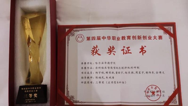 11月17日,第四届中华职业教育创新创业大赛全国总决赛在重庆落幕,公司师生荣获大赛三等奖,为黑龙江省本科组唯一。