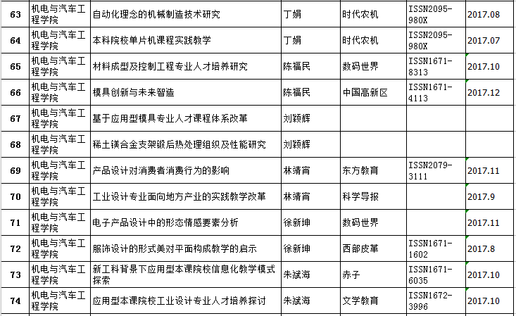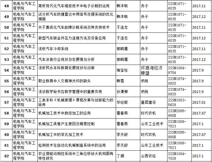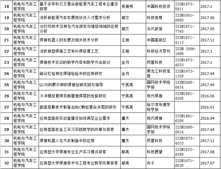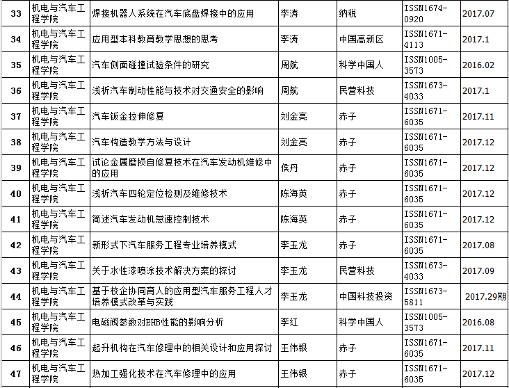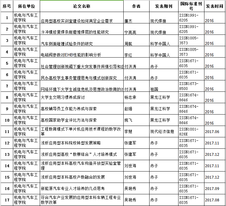 机电与汽车工程公司2016-2017年教师发表论文情况统计表