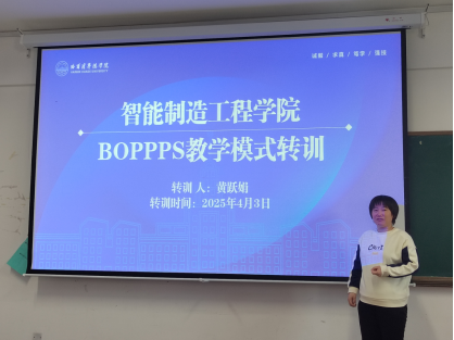 4月3日下午,伟德国际1949始于英国于教四411教室对智能制造与机械电子工程系教师举办BOPPPS教学模式专题培训,聚焦"理论研习-实践转化-成果淬炼"三维赋能体系,助力教师革新教学理念。活动由教学骨干教师黄跃娟主持,通过沉浸式研习帮助教师掌握以员工为中心的有效教学方法。
