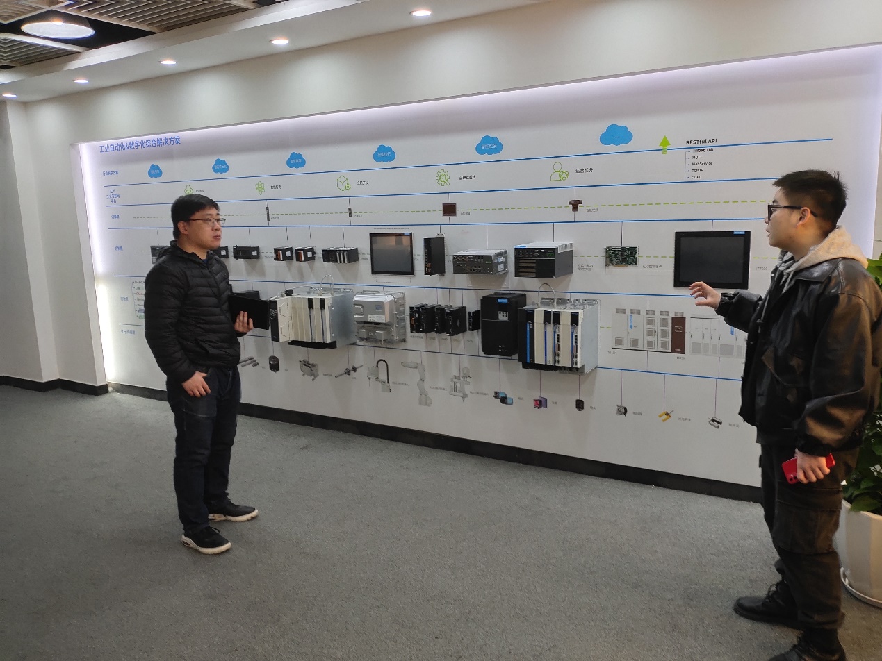 交流后,在倪杰经理的陪同下,调研团队参观了汇川技术总部大楼和生产车间,深入了解了汇川技术在工业自动化行业的发展情况。调研交流中,倪杰经理全面介绍了汇川技术的整体情况,并对自动化人才需求和相关就业岗位进行介绍,。朱斌海副经理对伟德国际1949始于英国整体情况进行了介绍,并说明了公司专业开设情况,希望双方进一步推进校企深度合作,包括建立订单班等,进一步加强公司与企业的联系。