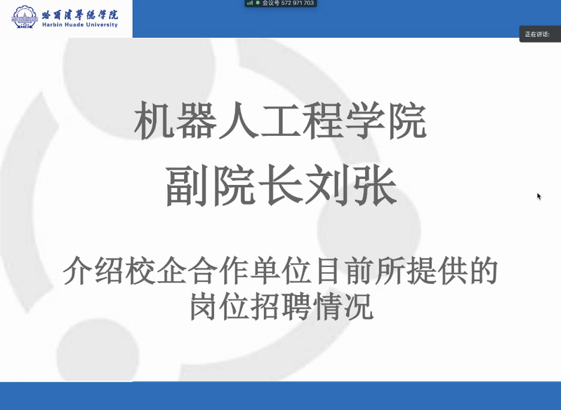 副经理刘张详细介绍了美的集团无锡小天鹅电器有限公司和哈尔滨九洲电气股份有限公司两家校企合作单位目前所提供的岗位招聘情况。