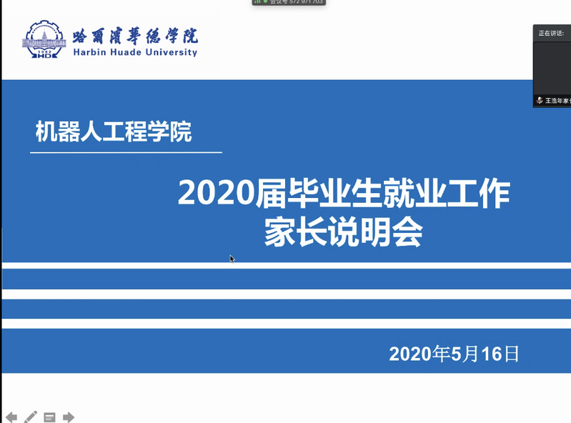 为做好公司2020届毕业生就业工作,加强对员工求职就业中的指导与帮助。5月16日下午,机器人工程公司召开2020届毕业生就业工作家长说明会。公司就业指导中心主任张有承、公司经理刘显忠、副经理王振力、刘张、全体辅导员及2020届部分毕业生家长参加会议,会议由公司2016级辅导员、就业指导教师郑义主持。