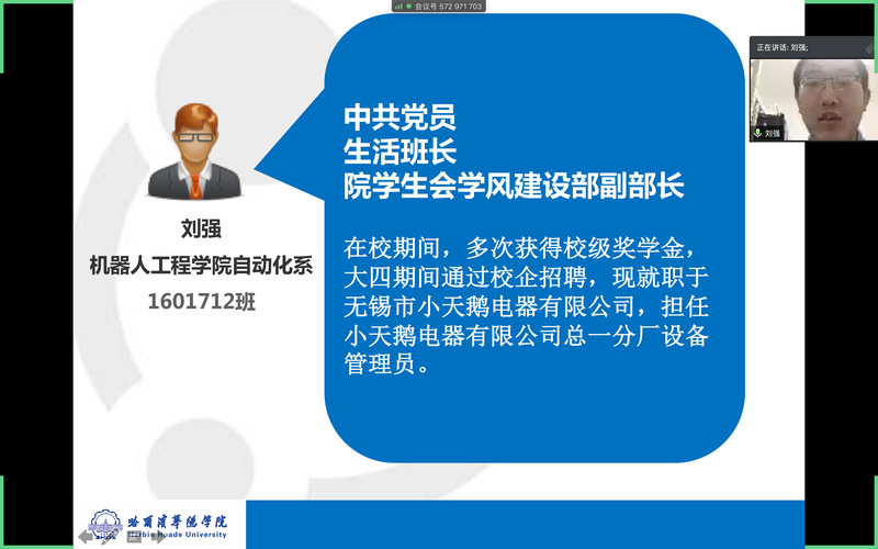 现就职于美的集团无锡小天鹅电器有限公司的1601712班刘强同学分享了自己的就业经历,详细介绍了所在企业各岗位的工作内容、薪资待遇及发展前景,使员工家长更加了解了公司校企合作单位的具体情况。