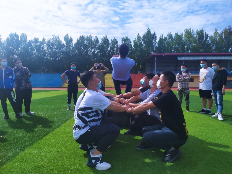 最后,副经理刘张老师带领员工进行素质拓展活动。素拓内容丰富多彩,形式多样,整个过程紧张激烈又趣味横生,同学们群策群力,团结合作。通过此次素质拓展活动,大家感受到沟通、合作、凝聚力、人际关系以及遵从团体规范的重要性,加深了大家对班级这个大家庭的集体归属感。