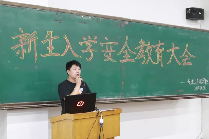 为了确保2018级新生能够重视安全,遵守校规校纪,机器人工程公司于9月3日下午在第二教学楼102教室召开了新生入学安全教育大会,公司学工副经理刘张老师、辅导员刘博老师参加并主持会议。