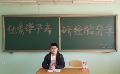 最后王韩笑老师对本次分享会进行总结,他希望同学们在考研路上坚持不懈,克服浮躁,“立身以立学为先,立学以读书为本”,要耐住寂寞忍常人之所不能忍,得常人之所不能得,并祝愿在座的每一名同学最终都能如愿成就自己的辉煌。