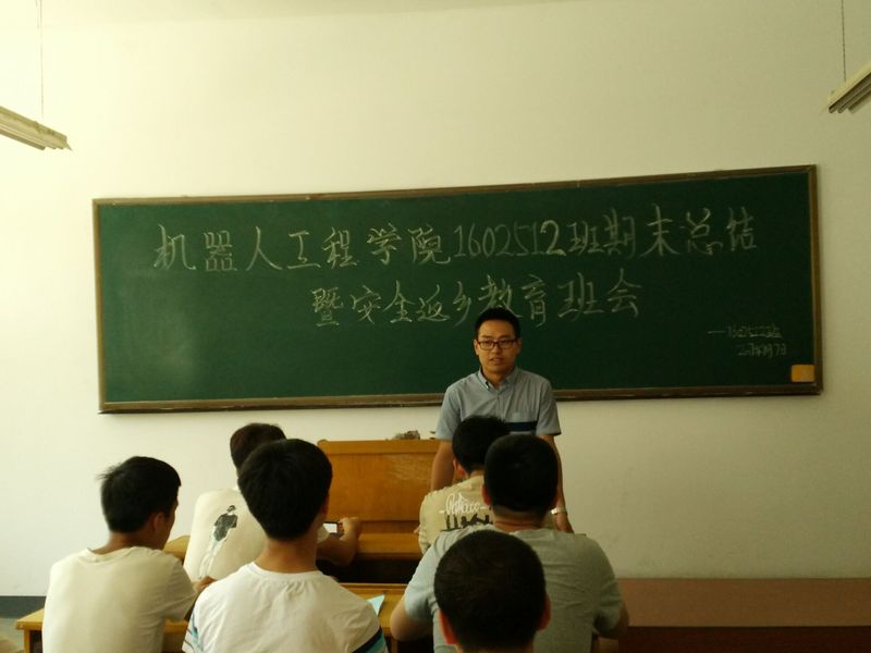 机器人工程公司于7月7日,在教一115、116、117、119、120、122 召开“2016级员工学期总结暨安全返乡教育”主题班会,会议由辅导员苏军主持。