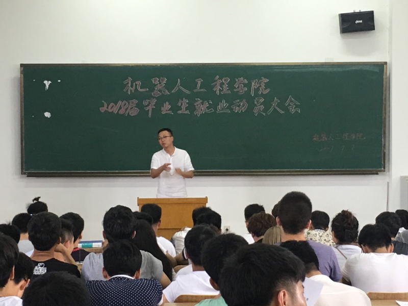 机器人工程公司于7月7日,在教二J401召开了“2018届毕业生就业动员大会”,就业指导中心王亮、辅导员刘博、及全体2018届毕业生出席会议。会议由员工工作负责人刘张主持。