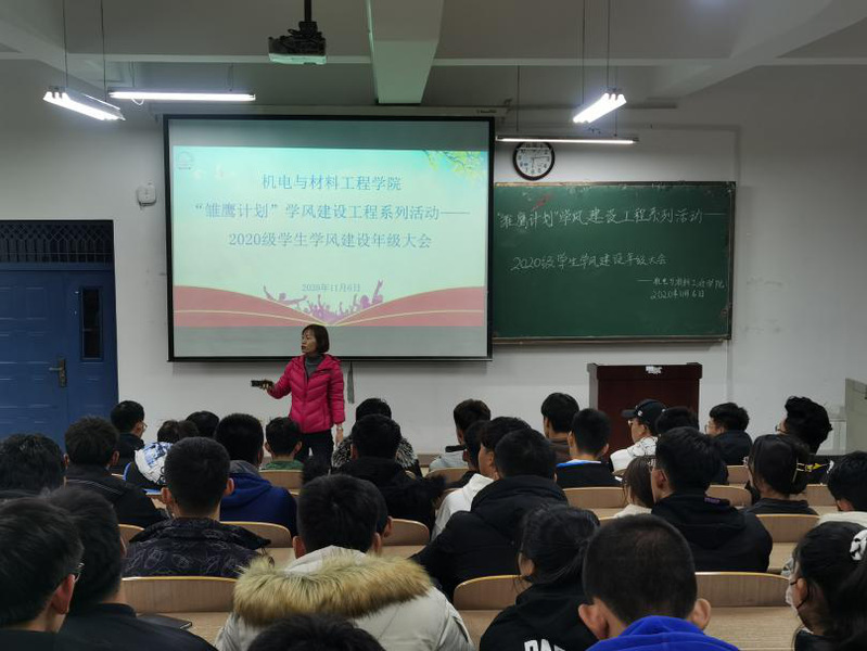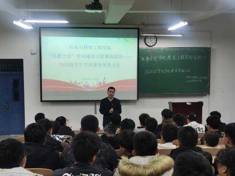 为进一步发挥公司“雏鹰计划”学风建设工程在员工成长成才过程中的引领性作用,全面提升公司整体学风建设工作,机电与材料工程公司于11月6日在第五教学楼201室召开2020级员工学风建设年级大会。董事长助理兼机电与材料工程公司经理李长威、党总支书记王郁黎、辅导员王彪及全体2020级员工参加会议。