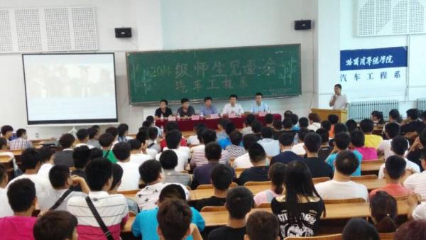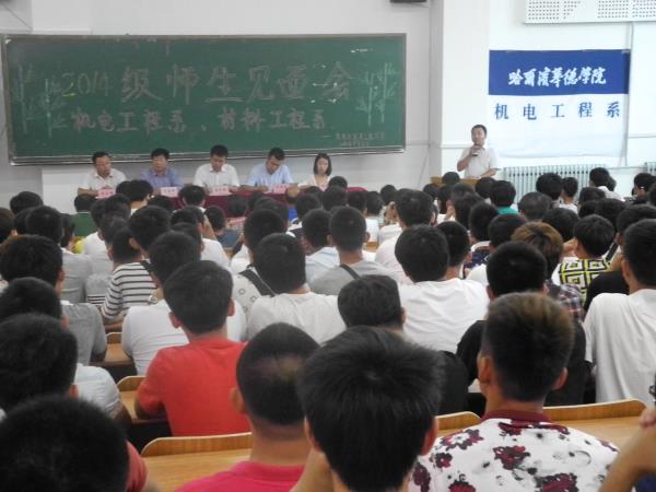 9月2日,公司在第二教学楼J102教室开展2014级新生入学教育活动之:师生见面会。此次师生见面会共分两场次,副董事长邓维娜;公司常务副经理李长威;校特聘专家、博士生导师于建国;副经理吴柏宇、付洪涛;机电工程系副主任孙立峰;材料工程系副主任杨德云;汽车工程系副主任宁士君及分院各教研室教师、全体辅导员出席,分院2014级全体员工参加会议,会议由分院院办副主任、团总支负责人范雪阳主持。