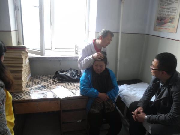 在探望过程中汪莆力老师与员工们得到了柏大林先生的热情接待,柏医生对公司员工思想动态与日常生活表示关心,并对汪莆力老师多年来的帮助表示感谢。探望时恰逢有患者就诊,柏大林先生为分院师生代表讲述了一些简单的症状与治疗手法,为表示感谢特意为分院师生代表书写盲文名字并展示评为省自强模范时任省长栗战书与其合影以示感谢。