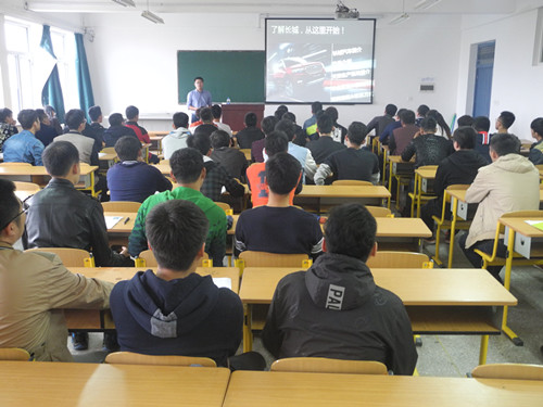 宣讲现场,负责招聘长城汽车公司代表张虎经理、淮海汽车孙剑副总经理分别从集团业务、主要车型、企业文化、职业生涯体系、薪酬福利等方面向同学们作了详细介绍。