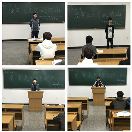 为进一步调动员工课前演讲的积极性,提高演讲质量,机电与汽车工程公司在践行“课前五分钟演讲”这一品牌中创新工作方法,多渠道、多形式开展此项活动,3月27日起,利用晚自习期间在2016级试点开展“课前五分钟演讲”对抗赛和即兴演讲活动。