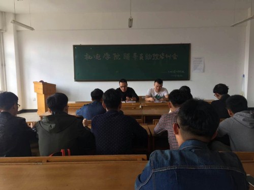 8月29日中午,机电与汽车工程公司在第四教学楼410教室组织召开2017级辅导员助理培训会,公司2017级全体辅导员助理参加培训,辅导员姚飞、赵强担任主讲。