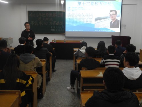 讲坛开始之前,员工刘元风向在座同学们提出了三个问题:我们为什么上大学?大学毕业后我们要留在哪里?毕业后我们要做什么?刘元风希望同学们能够深思这三个问题,把握好自己,让老员工活不留遗憾。随后刘元风讲述了自己在大学期间母校和老师对自己的无私帮助、毕业后的工作经历,讲述了自己在工作中所遇到的困难以及是如何去面对、解决这些问题。随后。在互动交流环节,同学们提出了学习中的困惑和找工作将要面临的问题,员工刘元风一一进行了耐心细致解答。
