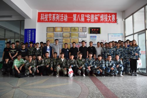 5月15日,机电与汽车工程学院于在第四教学楼焊接实验室举办科技节系列活动之第八届“华德杯”焊接大赛。董事长助理兼机电与汽车工程公司经理李长威、党总支书记付洪涛、副经理周启新、经理助理宁士君、焊接技术与工程系主任郝亮、团总支书记杨志承、焊接技术与工程系专业教师廉杰出席,2016、2017级焊接技术专业员工参加。