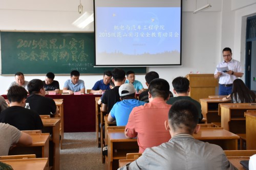5月31日,机电与汽车工程公司于第四教学楼404教室召开2015级昆山实习安全教育动员会。董事长助理兼机电学公司经理李长威、党总支书记付洪涛、及相关教师出席。