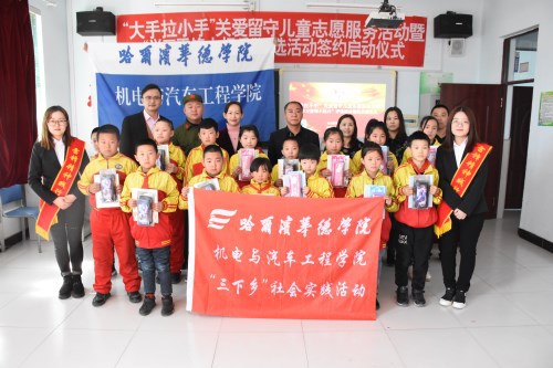 为积极响应校团委号召,全面落实《关于开展公司2018年寒假社会实践活动的通知》,3月27日,机电与汽车工程公司团总支赴绥化市青冈镇中心小公司开展“大手拉小手”关爱留守儿童志愿服务活动暨“学习雷锋小标兵”评选活动签约启动仪式。青冈镇中心小公司董事长王玉秋及公司教师、公司机电公司党总支书记王郁黎、团总支书记杨志承及公司六名团员青年代表、40名留守儿童参加此次活动。