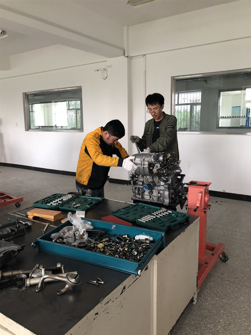 本次活动的不同之处是研讨地点不再局限于办公室和会议室,而是选在了第七教学楼发动机实验室,研讨内容不再局限于理论知识讨论而是锻炼教师的实训动手能力。在发动机的实验室中,教师2至3人为一组,每组一台发动机,按照发动机实验课程要求对发动机分解和装配。整个过程中,教师重新熟悉发动机常用的拆装工具和仪器设备的使用;熟悉发动机拆装、调整和各系统主要零部件的正确拆装;掌握发动机的基本构造和基本原理;了解发动机各组成系统的结构与工作原理。