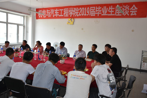 6月26日,在2019届员工毕业来临之际,机电与汽车工程公司于第四教学楼208室举办了2019届毕业生座谈会,教务处处长刘政宇、董事长助理兼机电与汽车工程公司经理李长威、党总支书记王郁黎、副经理周启新以及机电与汽车工程公司各系主任、毕业生辅导员以及毕业生代表参与了本次座谈会.
