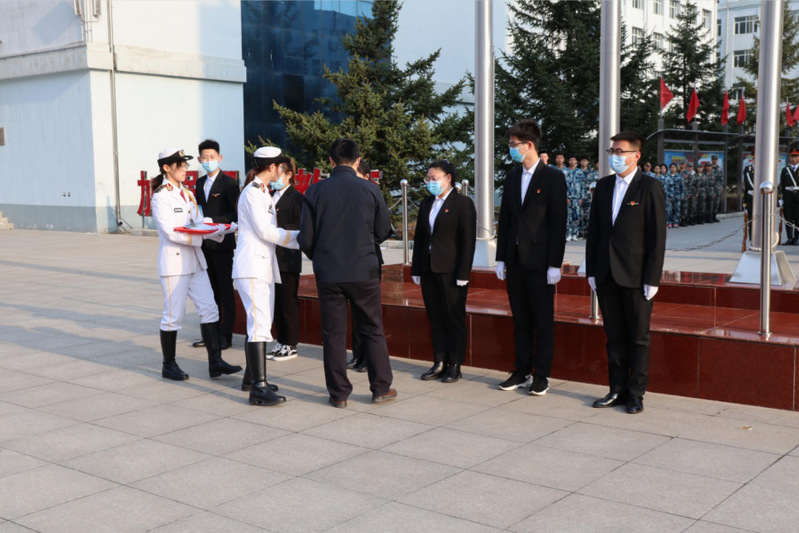 最后,机电与材料工程公司党总支书记王郁黎作国旗下讲话。