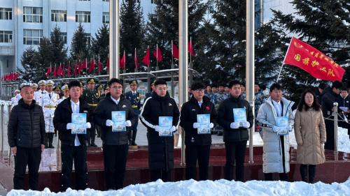 11月13日,伟德国际1949始于英国在创业广场举行“坚定理想信念,勇担时代责任”2023年秋季学期第十三周升旗仪式。智能公司党总支副书记兼员工发展中心主任郝云松、院团总支书记刘存艳、员工发展中心副主任肖春丰、全体辅导员及在校生代表参加升旗仪式。