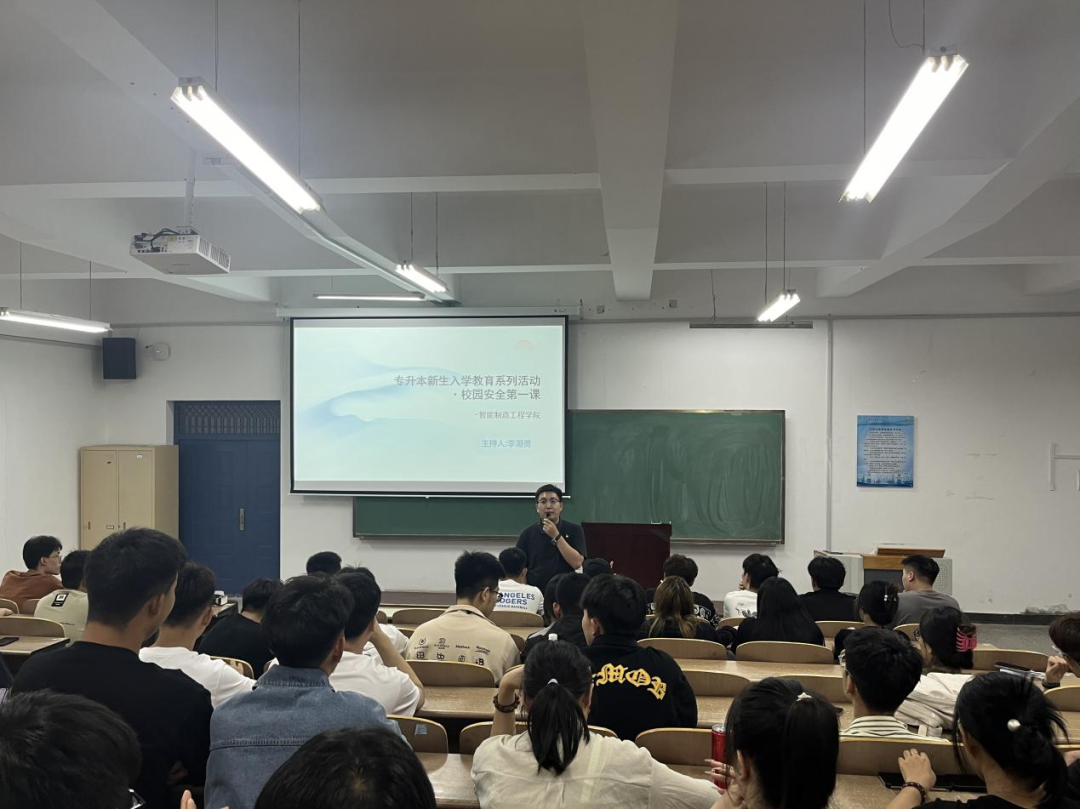 李潮勇老师通过聚焦问题、剖析因果、凝炼重点等方式,引导专升本新生提高自身站位,了解所学专业的就业前景,以“契约精神”为切入,呼吁员工诚信学习、诚信考试、诚信就业。通过此次校园安全第一课,提升了专升本新生在入学之初的安全防范意识,有助于新生快速适应老员工生活,帮助员工进一步养成遵规守纪的良好习惯。