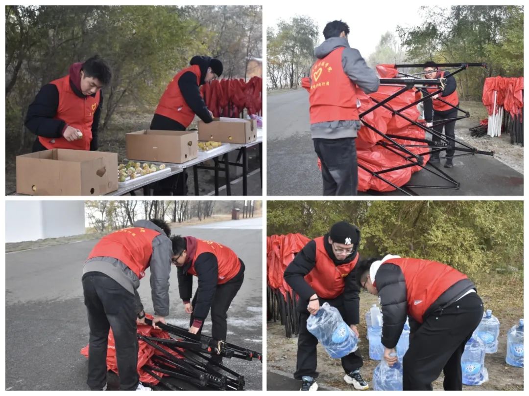 在马拉松赛即将拉开帷幕之际,有这样一群默默奉献的志愿者,他们投身于桌椅筹备布置、补给点搭建的工作中。他们的努力和付出,如同点点繁星,照亮了马拉松赛的筹备之路,让每一位参与者都能感受到无微不至的关怀与温暖。