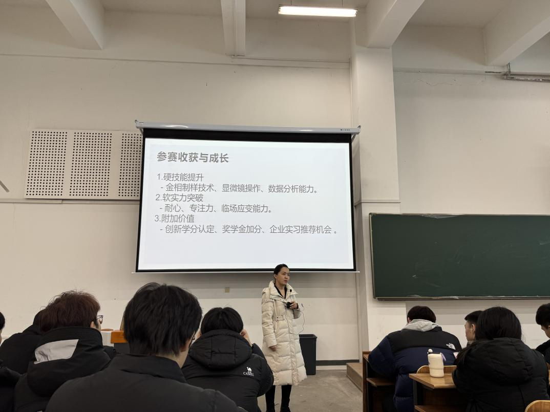 本次大赛的校赛有着明确的规则与流程。从样品制备、金相观察到组织分析,每一个环节都有严格的评分标准。参赛者需要在规定时间内完成样品的打磨、抛光、腐蚀等操作,展现出最清晰的金相组织。金月老师详细介绍了各个步骤的注意事项,确保同学们在比赛中能够规范操作,发挥出最佳水平。