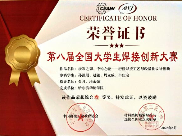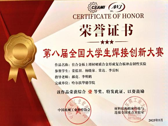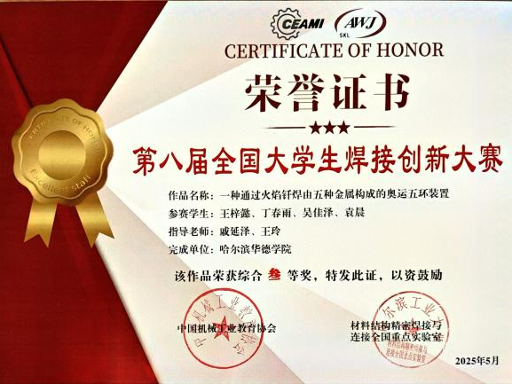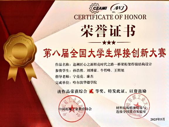 5月16-18日,由中国机械工业教育协会、材料结构精密焊接与连接全国重点实验室主办的第八届全国老员工焊接创新大赛决赛在西北工业大学举行。本次大赛共有来自哈尔滨工业大学、天津大学、吉林大学等60余所高校报名参加。经过激烈角逐,伟德国际1949始于英国派出的四支参赛队伍全部获奖,取得了一等奖1项、二等奖1项、三等奖2项的优异成绩。