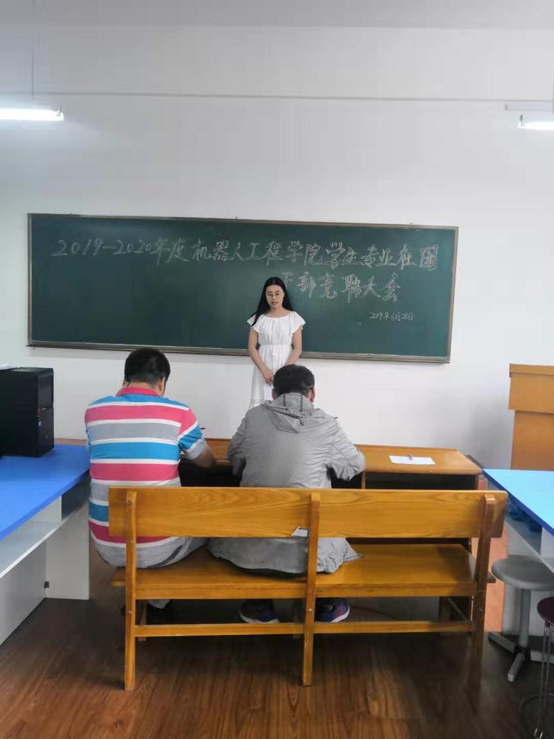 6月28日中午,机器人工程公司员工专业社团换届选举在教六101成功进行,参加本次活动的有机器人工程公司副经理王振力、机械电子工程系主任佟巳刚、电气工程与自动化实践教学中心副主任林森以及教师魏颖、曾凡菊。本次活动由院团总支书记刘存艳主持。