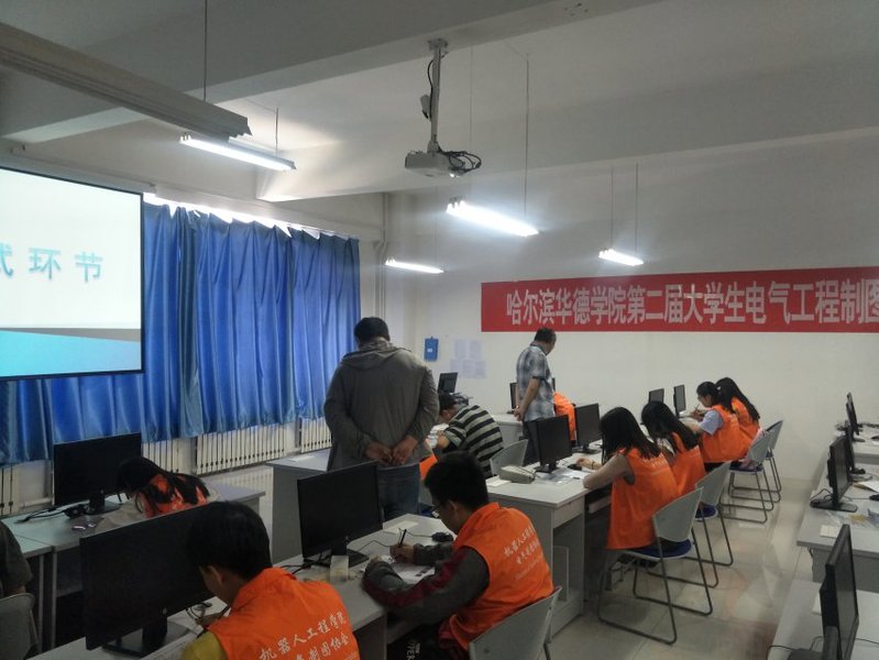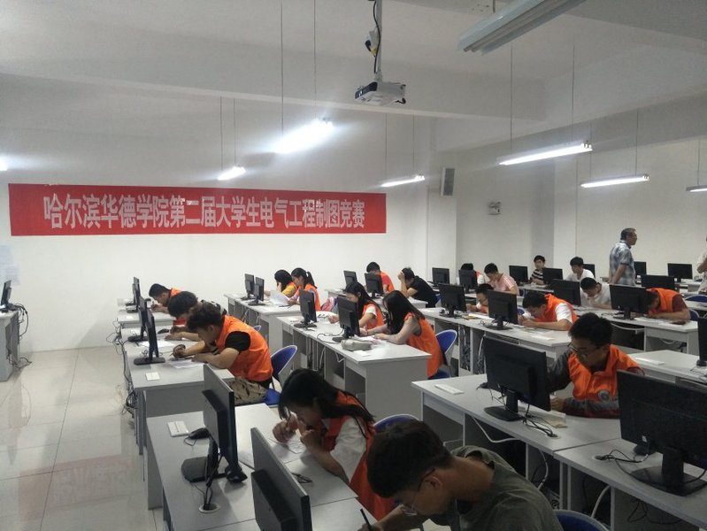 笔试过程中,参赛者们严格纪律,争分夺秒,熟练操作,表现出良好的技能水平和精神风貌。上机操作环节,参赛同学认真阅读图纸,仔细思索后熟练制图,机房中键盘敲打声与鼠标点击声相间交替,电气制图协会的工作人员在现场有序地组织比赛,比赛过程中同学们展现出高超的制图水平,整场比赛有条不紊地进行。