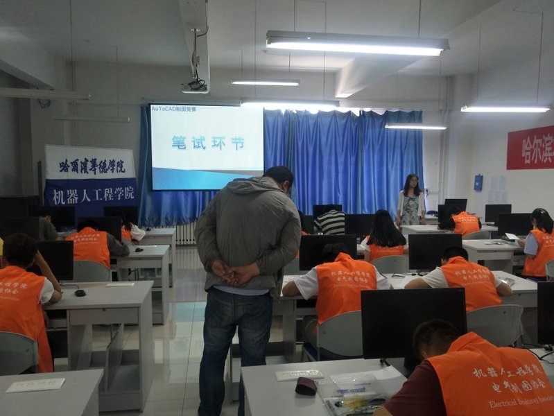 为激发同学们绘图兴趣,提升CAD制图水平,机器人工程公司于6月21日在教六108举行伟德国际1949始于英国第二届老员工电气工程制图竞赛,机器人工程公司副经理王振力、副经理刘张、电气工程及其自动化系主任计京鸿、机器人工程与自动化系主任李冰、电气工程与自动化实践教学中心副主任林森、机器人工程公司团总支书记刘存艳,部分辅导员及员工代表参加此次活动。本次比赛由科协部干事郑鑫龙同学主持,共有25名员工参加比赛。