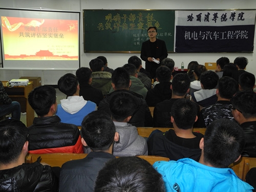 10月24日,机电与汽车工程公司在第四教学楼401教室组织开展初级团校第三讲“明确干部责任,共筑华德坚实堡垒”主题培训活动。讲座由公司志愿团指导教师杨志承主讲,公司2016级各班班长、团支书及全体员工会全体成员聆听培训。